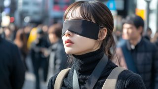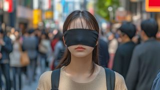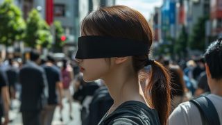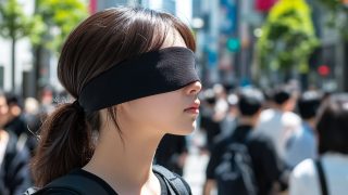 今日のテーマ 街中で、目隠しされる女性 山口県 宇部市