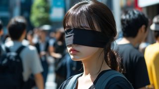 山口県 宇部市 で、目隠しされている女性 ストリートスナップ